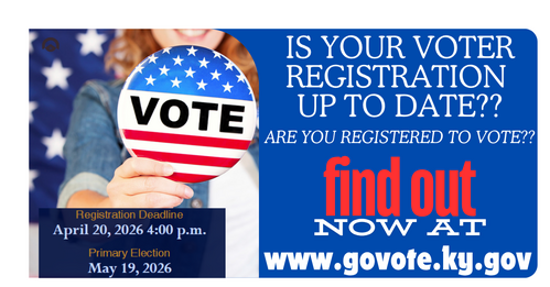 Click HERE to visit the Kentucky Voter Information Center. This link will provide you with your individual voter information, precinct information and legislative districts information. If you notice your information is listed incorrectly, please contact our office ASAP at (270) 887-4107 ext. 4.